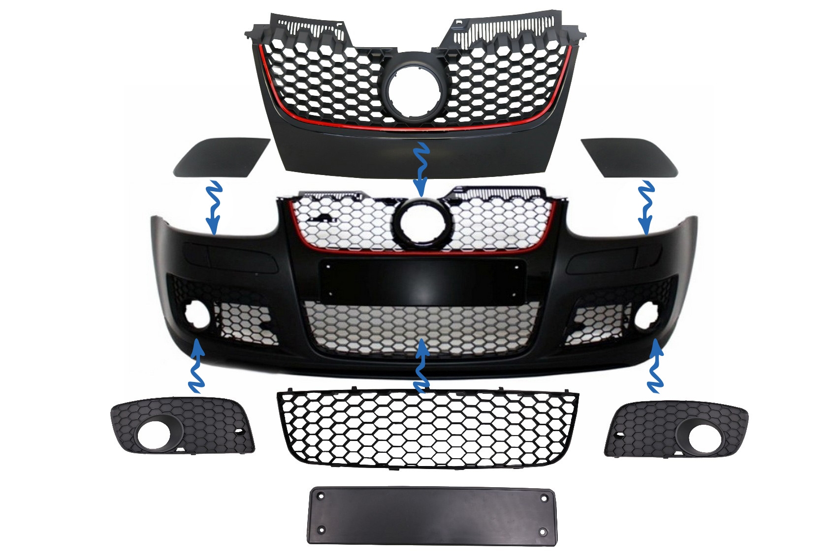 Accesorii Grile compatibil cu Bara fata GTI Look VW Golf 5 V (2003-2007)