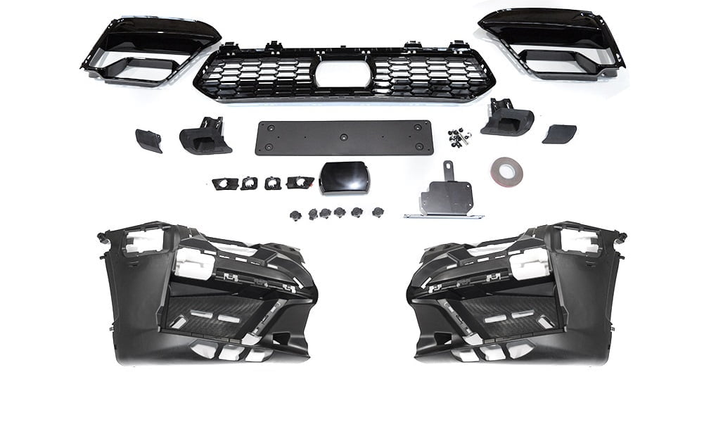 | – gauri pentru senzori de parcare – gauri pentru spalatoare de parbriz – capac spalator – capac bara de remorcare – grila bara de protectie inferioara – grile bara de protectie laterale