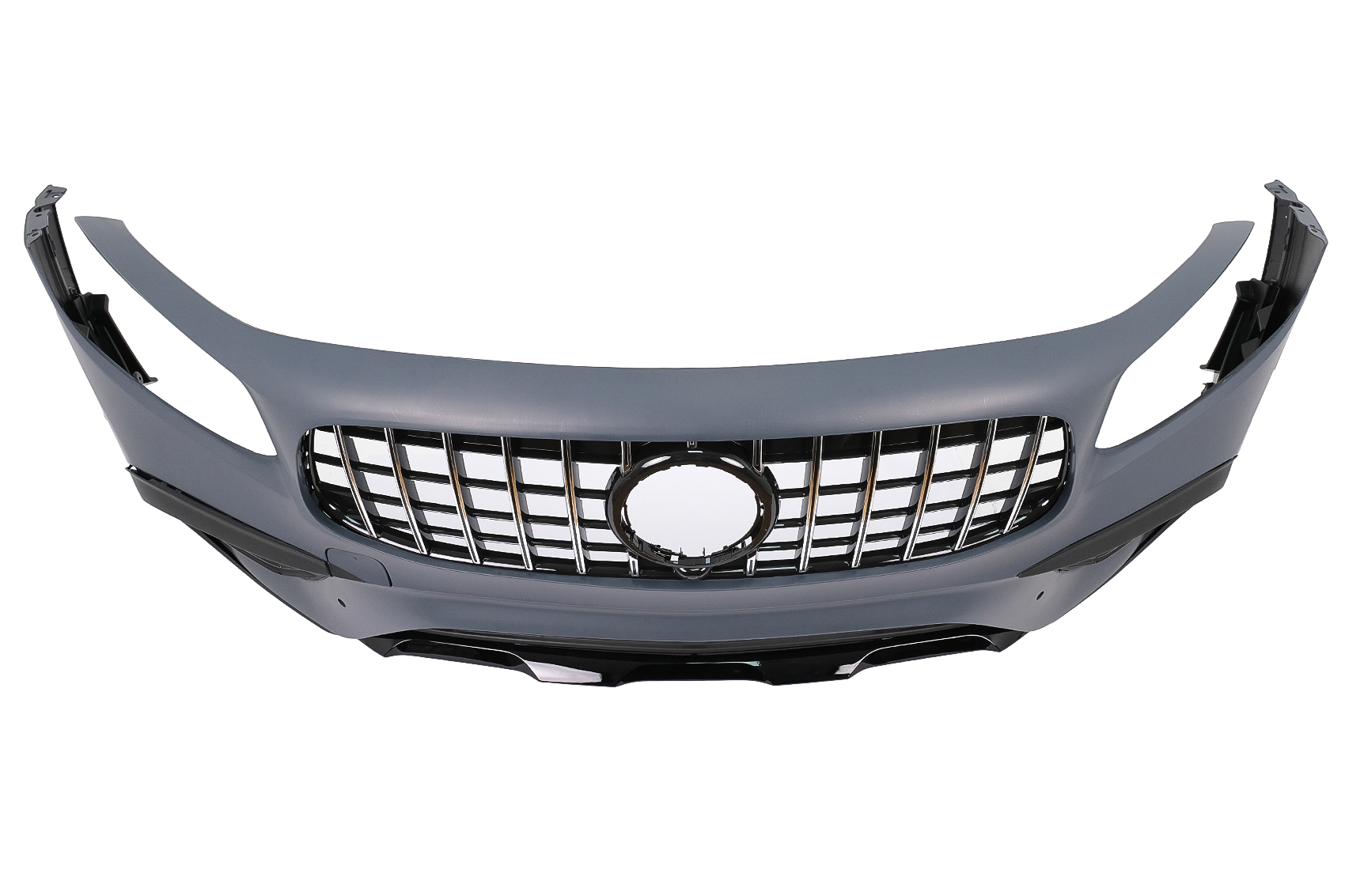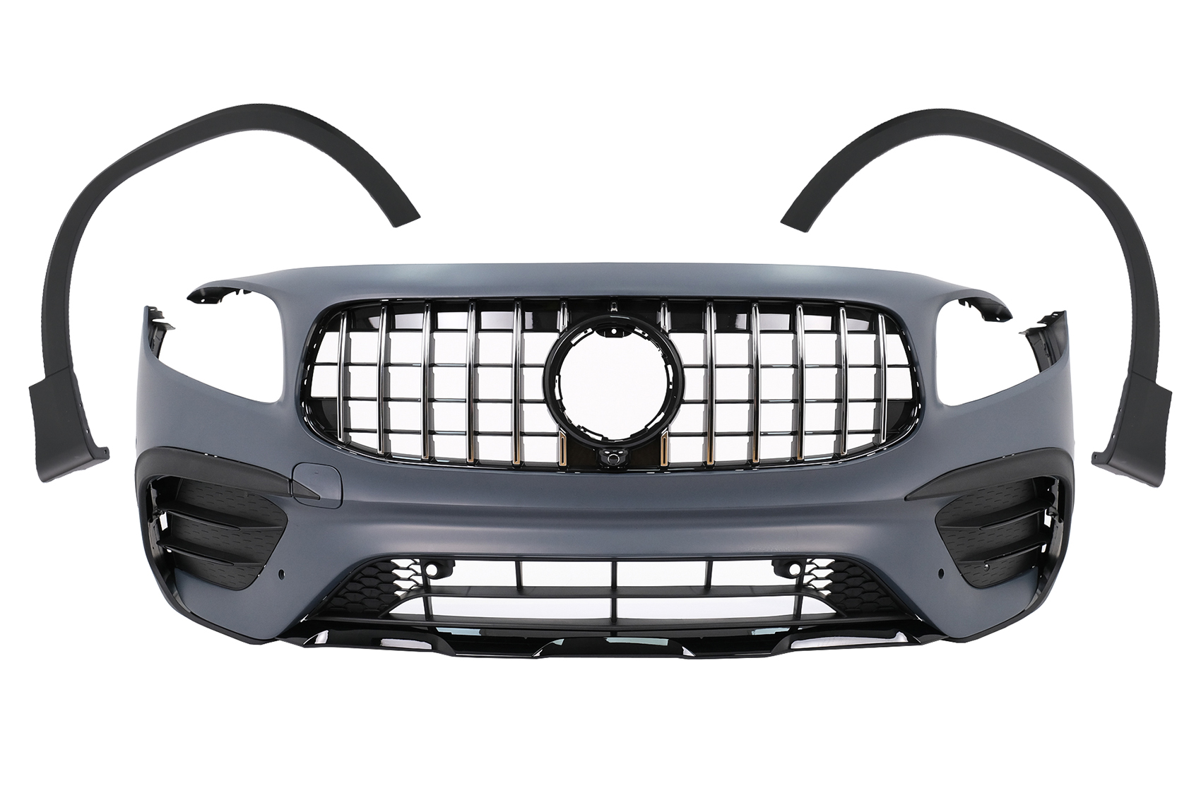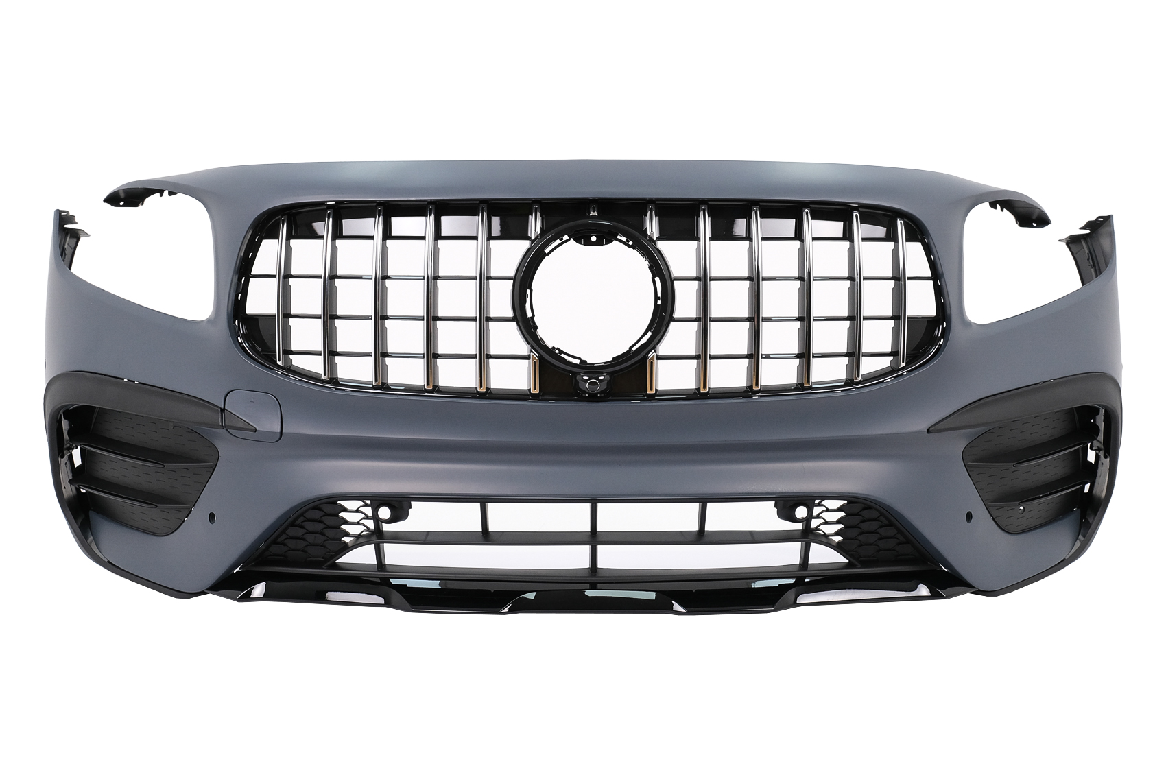 Bara Fata echipata cu grila centrala, grila central-inferioara, grile laterale, suporti pentru camera, suporti pentru senzorii de parcare (PDC) si capacul carligului de remorcare.
