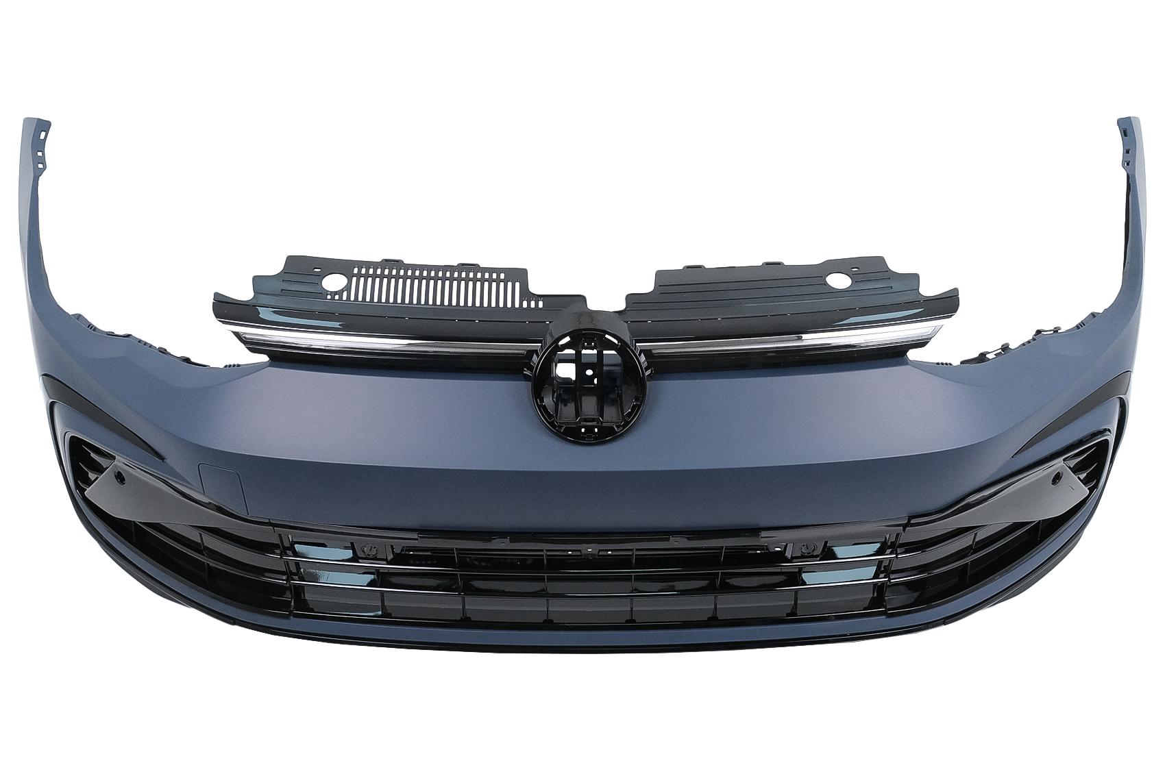 Echipata cu grila centrala, grile inferioare, capac pentru carligul de remorcare, gauri si suporti pentru senzorii de parcare (PDC).