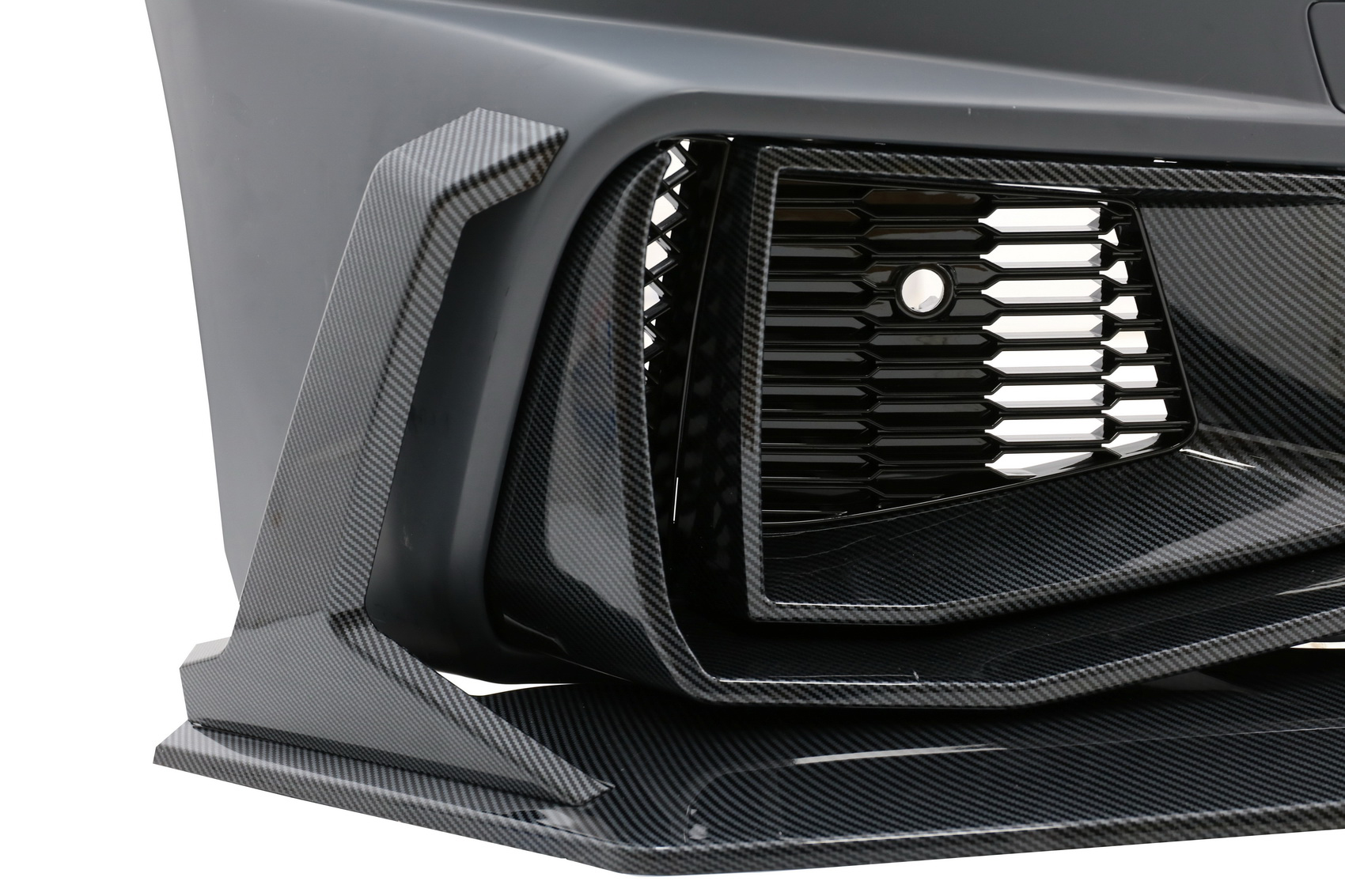 Bara fata RS6 look echipata cu grilele laterale, capacele pentru carligul de remorcare si capacele pentru sistemul de spalare al farurilor.