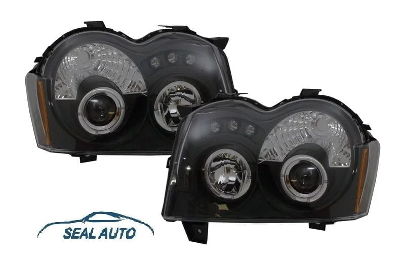 Set 2 faruri compatibil cu JEEP Grand Cherokee WH (2005-2008) Angel Eyes Negru