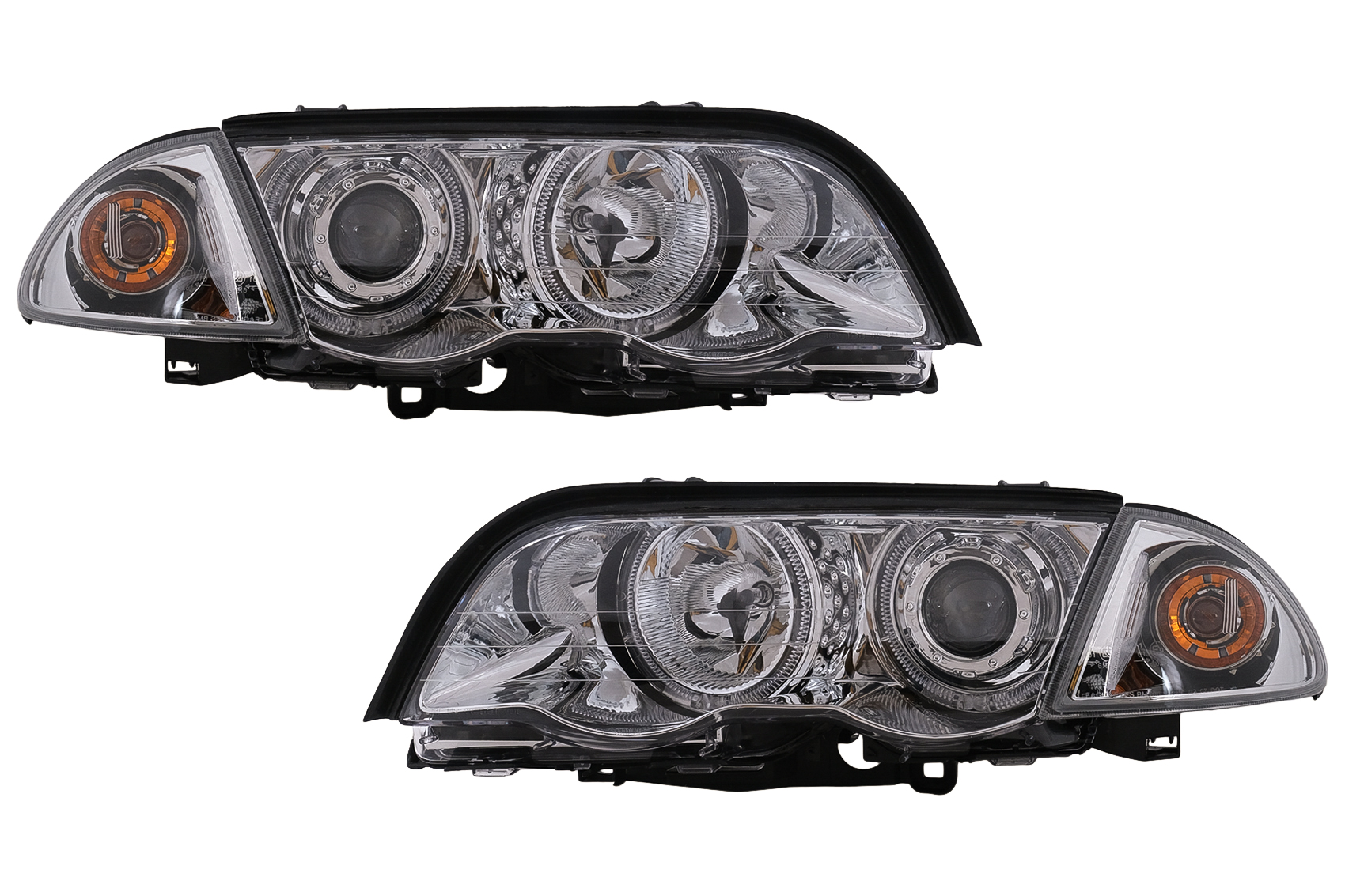 Faruri Angel Eyes compatibil cu BMW Seria 3 E46 Sedan Touring (05.1998-08.2001) Crom