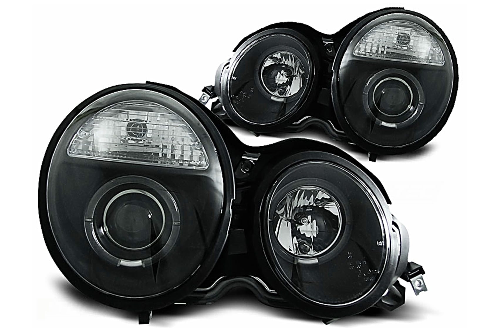 Faruri Angel Eyes compatibil cu Mercedes E-Class W210 S210 (1995-05.1999) Negru