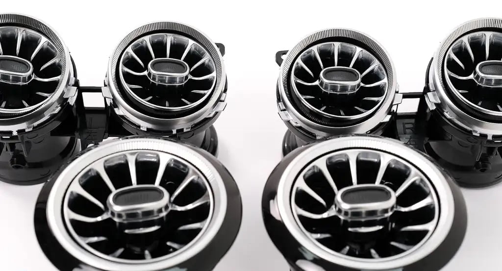 Proiectate specific, aceste grile nu doar optimizează circulația aerului și controlul climatului din interiorul mașinii, ci adaugă și o notă de design modern și sofisticat. Cu LED-uri integrate, aceste grile introduc o lumină ambientală subtilă, completând atmosfera premium a vehiculului tău. Experimentați confortul și rafinamentul la un nivel nou cu grilele noastre pentru ventilatia aerului. Realizate din plastic de cea mai înaltă calitate. Disponibile cu 64 de culori.
