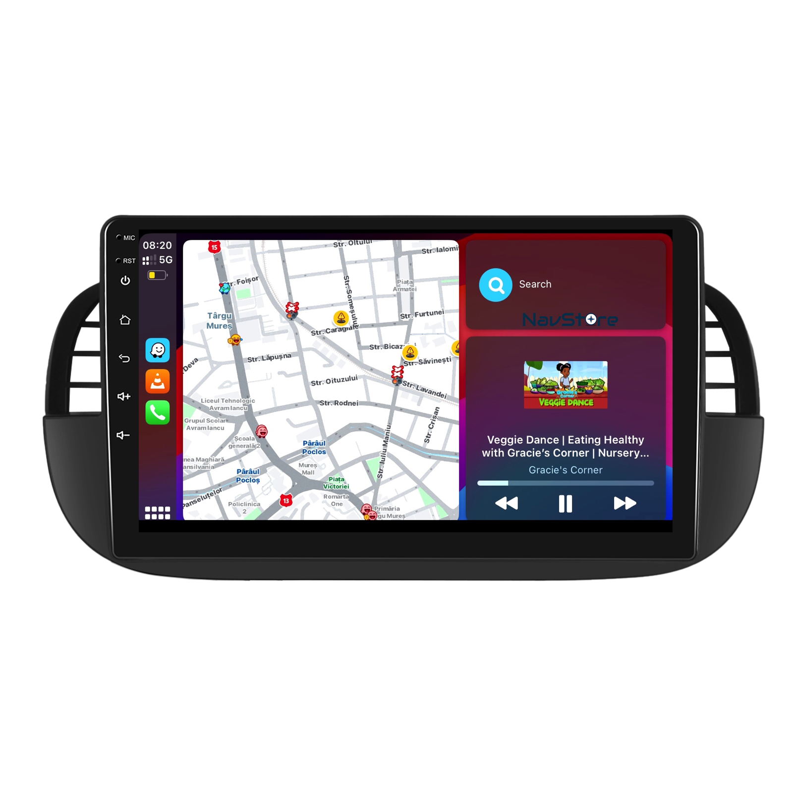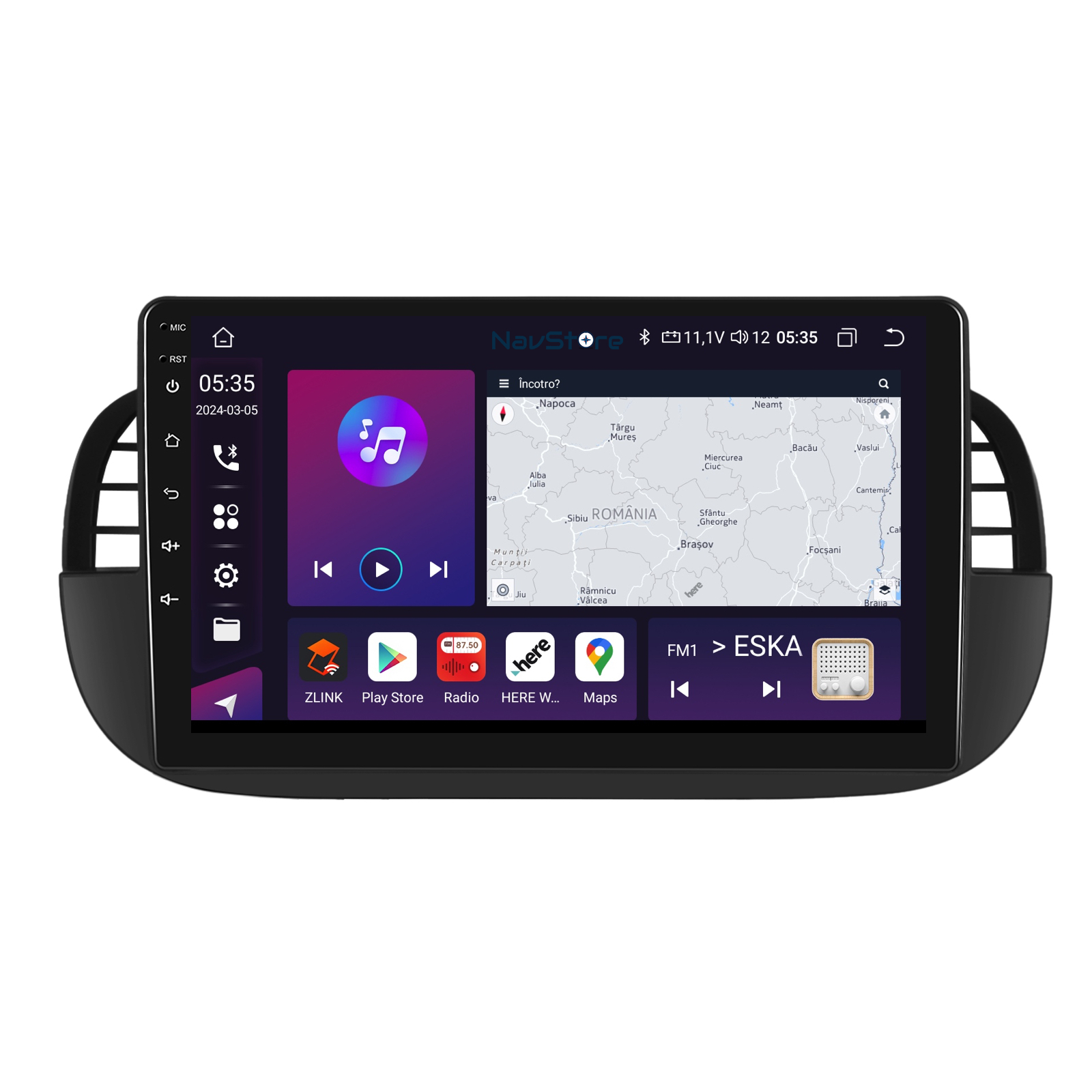 Specificatii Tehnice: Sistem Operare: Android 12 Dimensiune ecran: 9 inch cu touchscreen Memorie Ram: 4 GB Memorie interna: 64 GB Procesor:Octa-Core 1.6GHZ Chip: 8581 Conectare: USB (redare fisiere audio video) Wi-Fi (conectarea la internet se poate face prin hotspot sau SIM ) Bluetooth (redare audio sau functie apelare) Microfon incorporat Cablaj pentru conexiunea cu subwoofer si boxe suplimentare. Rezolutie: 1280 720, 1080P video HD. Display: QLED Apple CarPlay si Android Auto Wireless Ventilator pentru o racire mai eficienta Functii: Preia comenzile de pe volan si informatiile masinii. Preia senzori de parcare (afiseaza senzorii doar daca sunt din OEM fata-spate). Iesire usb (redare audio si video) Iesire audio 4x50W Cabluri RCA pentru subwoofer. Conectare telefon prin bluetooth (redare audio de pe telefon,convorbiri telefonice, agenda telefon). Suporta camera marsarier ADH si camera dvr. Continutul pachetului : 1 x Navigatie Auto 1 x Antena GPS 1 x Cabluri RCA + Slot Sim 1 x Cablu RCA camera 1 x Cablu USB 1 x Canbus 1 x Mufe de alimentare Navigatia este compatibila cu urmatoarele marci auto : Fiat: 500 (2007 – 2015)