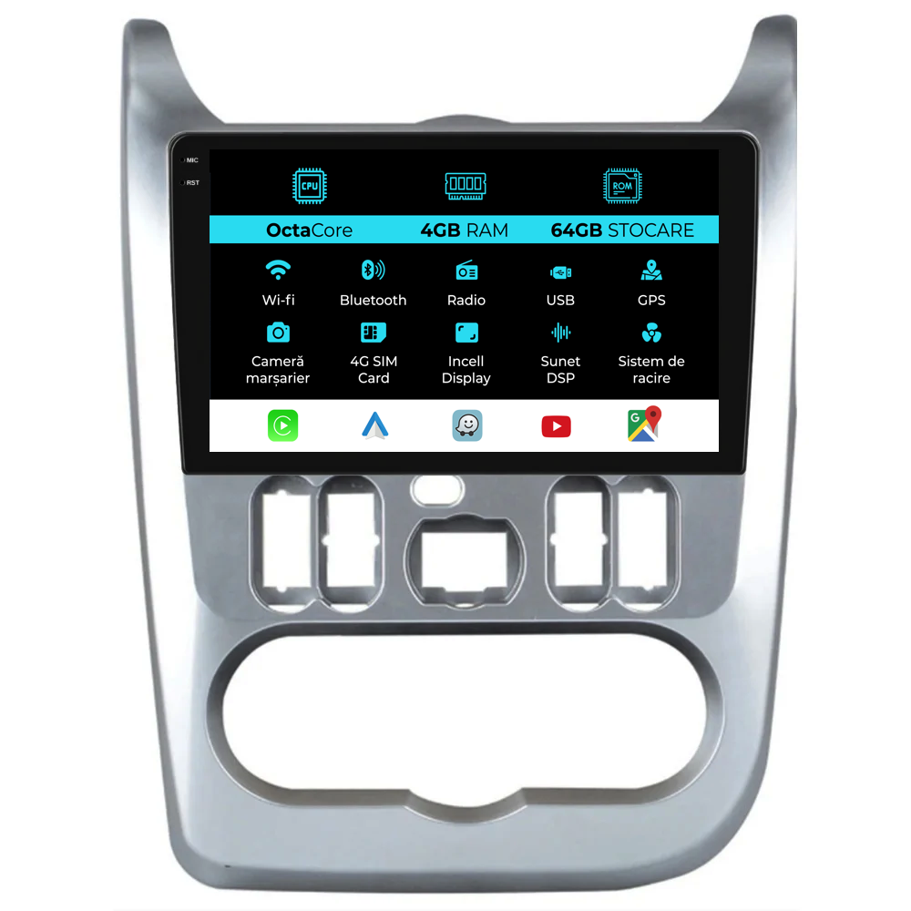 Navigatie Dedicata Dacia Logan Duster Sandero (2008-2013),Incell 9Inch, 4Gb Ram, 64Gb Stocare, Carplay