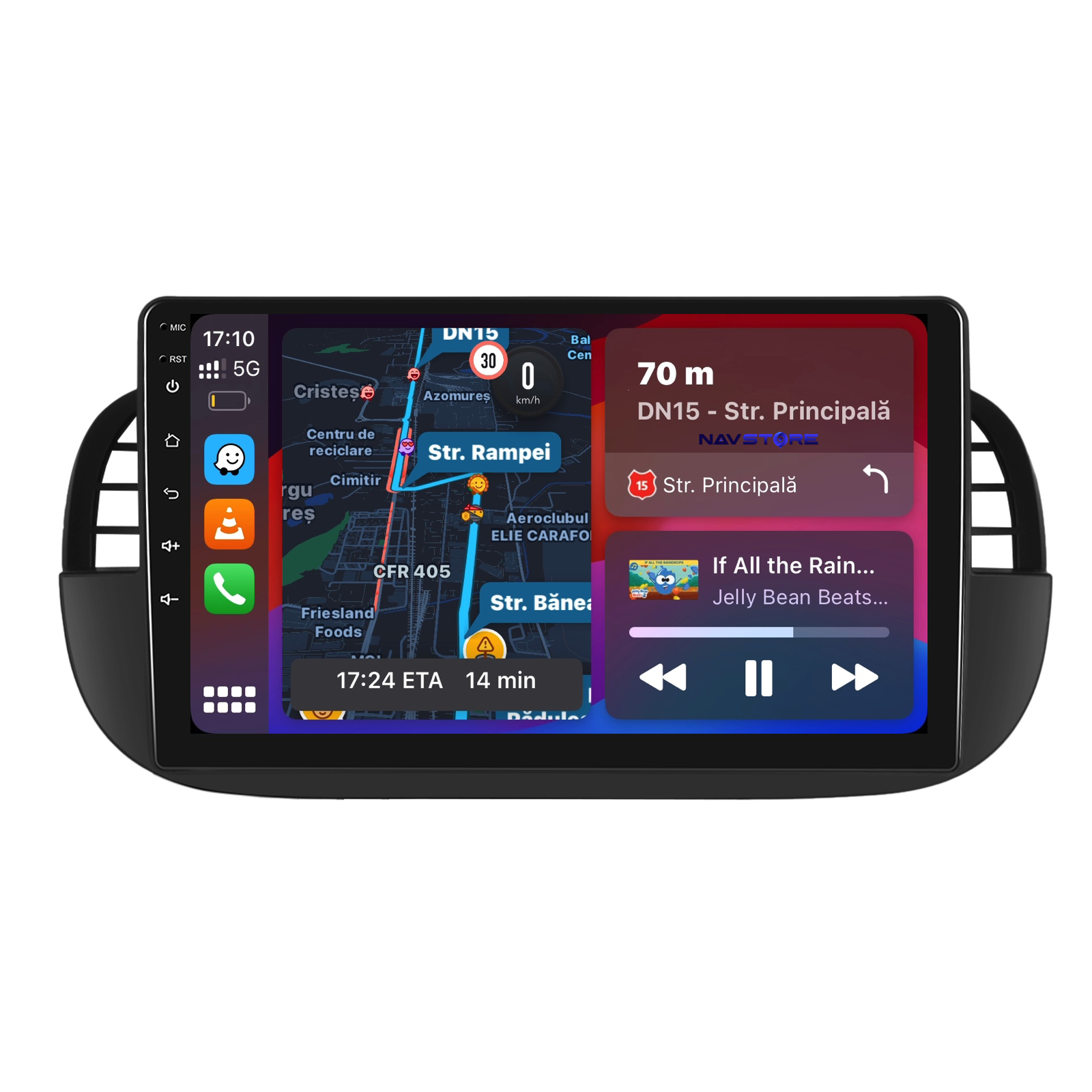 Sistem de operare: Android 13 Procesor: Octa-core 1,8Ghz Memorie RAM: 6GB Stocare interna (ROM): 128GB Dimensiune Display: 9 Inch Rezolutie ecran: 1280x720p Bluetooth: Bluetooth pentru apeluri, descarcare agenda telefonica si redare muzica WiFi: Da (Integrat) Slot Sim 4G: Da Conectivitate retea: 4G, Hotspot telefon, router extern, dongle 3G sau 4G, CarPlay Android Auto Microfon: Microfon integrat, cu posibilitate de conectare microfon extern Alimentare: 12V Putere audio: 4x45W Egalizator DSP: Procesor de sunet digital (DSP EQ) Compatibilitate USB SD: Compatibil cu USB de pana la 128GB, suport SD prin adaptor USB Compatibilitate aplicatii Android: Compatibil cu majoritatea aplicatiilor Android din Google Play Compatibilitate CarPlay si Android Auto: Da, compatibil cu iOS (CarPlay) si Android (Android Auto) Suport pentru limbi:a Romana, Engleza, Maghiara, Spaniola, Italiana, Germana, etc. Tip ecran: TouchScreen capacitiv, multi-touch, IPS Setari luminozitate: Da Radio RDS: Da Iesire subwoofer RCA: Da Iesire video RCA: Da, cu ajutorul unui adaptor USB Iesire audio RCA: Da GPS: Da, (Google Maps, Waze, HereWeGo) Senzori de parcare: Da (Preluare senzori de parcare cu afisaj unde este cazul) Control volan: Da (Preluare comenzi volan cu canbus sau analogic unde este cazul) Compatibilitate camera DVR: Da Compatibilitate camera marsarier: Da Manual de utilizare: Da Continut pachet: Navigatie Android Rama adaptoare Cablaj de alimentare Antena GPS Antena 4G Conectori RCA Cablaj pentru camera de marsarier, 2 cabluri USB Canbus (doar daca este cazul) Certificat de garantie Factura fiscala Navigatia este compatibila cu urmatoarele marci auto : Fiat: 500 (2007 – 2015)