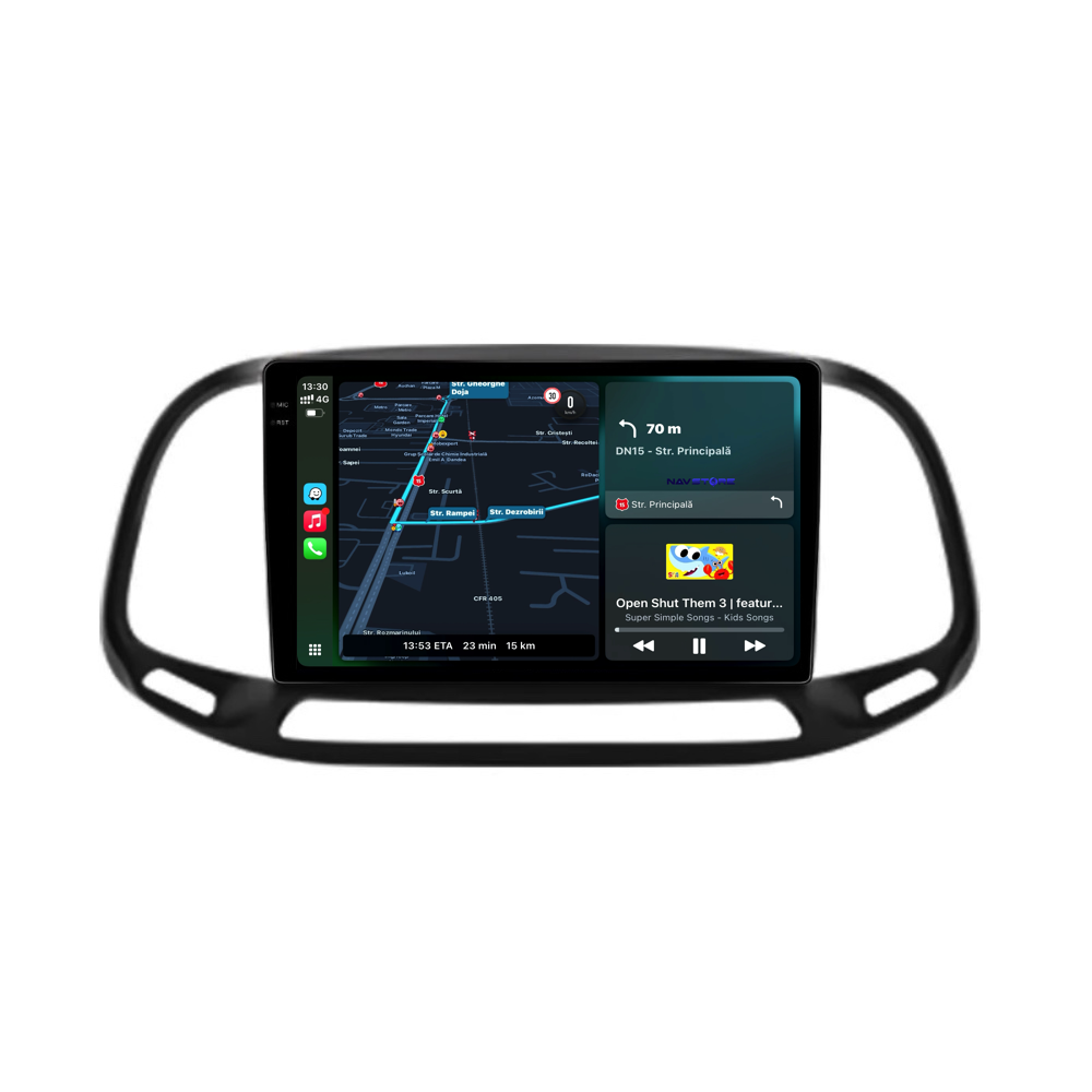 Sistem de operare: Android 13 Procesor: Octa-core Memorie RAM: 4GB Stocare interna (ROM): 64GB Dimensiune Display: 9 Inch Rezolutie ecran: 1360x800p Bluetooth: Bluetooth pentru apeluri, descarcare agenda telefonica si redare muzica WiFi: Da (Integrat) Slot Sim 4G: Da Conectivitate retea: 4G, Hotspot telefon, router extern, dongle 3G sau 4G, CarPlay Android Auto Microfon: Microfon integrat, cu posibilitate de conectare microfon extern Alimentare: 12V Putere audio: 4x45W Egalizator DSP: Procesor de sunet digital (DSP EQ) Compatibilitate USB SD: Compatibil cu USB de pana la 128GB, suport SD prin adaptor USB Compatibilitate aplicatii Android: Compatibil cu majoritatea aplicatiilor Android din Google Play Compatibilitate CarPlay si Android Auto: Da, compatibil cu iOS (CarPlay) si Android (Android Auto) Suport pentru limbi Romana, Engleza, Maghiara, Spaniola, Italiana, Germana, etc. Tip ecran: TouchScreen capacitiv, multi-touch, IPS Setari luminozitate: Da Radio RDS: Da Iesire subwoofer RCA: Da Iesire video RCA: Da, cu ajutorul unui adaptor USB Iesire audio RCA: Da GPS: Da, (Google Maps, Waze, HereWeGo) Senzori de parcare: Da (Preluare senzori de parcare cu afisaj unde este cazul) Control volan: Da (Preluare comenzi volan cu canbus sau analogic unde este cazul) Compatibilitate camera DVR: Da Compatibilitate camera marsarier: Da Manual de utilizare: Da Continut pachet: Navigatie Android Rama adaptoare Cablaj de alimentare Antena GPS Antena 4G Conectori RCA Cablaj pentru camera de marsarier, 2 cabluri USB Canbus (doar daca este cazul) Certificat de garantie Factura fiscala Navigatia este compatibila cu urmatoarele marci auto : Fiat: Doblo (2015 – 2019)