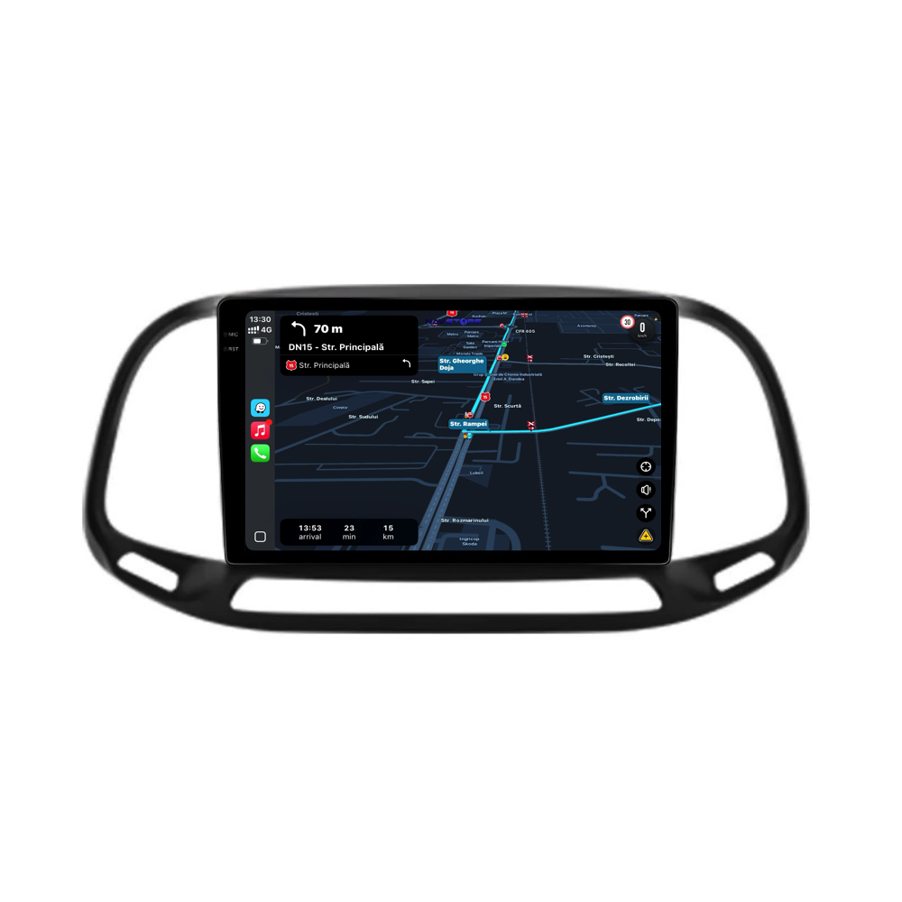 Sistem de operare: Android 13 Procesor: Quad-core 1.5Ghz Memorie RAM: 4GB Stocare interna (ROM): 64GB Dimensiune Display: 9 Inch Rezolutie ecran: 1360x800p Bluetooth: Bluetooth pentru apeluri, descarcare agenda telefonica si redare muzica WiFi: Da (Integrat) Slot Sim 4G: Nu Conectivitate retea: Hotspot telefon, router extern, dongle 3G sau 4G, CarPlay Android Auto Microfon: Microfon integrat, cu posibilitate de conectare microfon extern Alimentare: 12V Putere audio: 4x45W Egalizator DSP: Procesor de sunet digital (DSP EQ) Compatibilitate USB SD: Compatibil cu USB de pana la 128GB, suport SD prin adaptor USB Compatibilitate aplicatii Android: Compatibil cu majoritatea aplicatiilor Android din Google Play Compatibilitate CarPlay si Android Auto: Da, compatibil cu iOS (CarPlay) si Android (Android Auto) Suport pentru limbi Romana, Engleza, Maghiara, Spaniola, Italiana, Germana, etc. Tip ecran: TouchScreen capacitiv, multi-touch, IPS Setari luminozitate: Da Radio RDS: Da Iesire subwoofer RCA: Da Iesire video RCA: Da, cu ajutorul unui adaptor USB Iesire audio RCA: Da GPS: Da, (Google Maps, Waze, HereWeGo) Senzori de parcare: Da (Preluare senzori de parcare cu afisaj unde este cazul) Control volan: Da (Preluare comenzi volan cu canbus sau analogic unde este cazul) Compatibilitate camera DVR: Da Compatibilitate camera marsarier: Da Manual de utilizare: Da Continut pachet: Navigatie Android Rama adaptoare Cablaj de alimentare Antena GPS Conectori RCA Cablaj pentru camera de marsarier, 2 cabluri USB Canbus (doar daca este cazul) Certificat de garantie Factura fiscala Navigatia este compatibila cu urmatoarele marci auto : Fiat: Doblo (2015 – 2019)