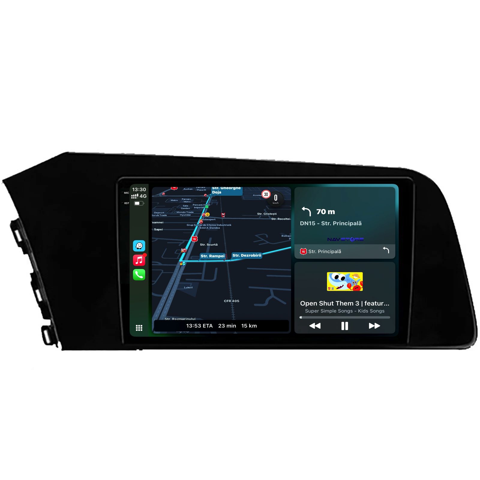 Sistem de operare: Android 13 Procesor: Quad-core 1.5Ghz Memorie RAM: 4GB Stocare interna (ROM): 64GB Dimensiune Display: 9 Inch Rezolutie ecran: 1360x800p Bluetooth: Bluetooth pentru apeluri, descarcare agenda telefonica si redare muzica WiFi: Da (Integrat) Slot Sim 4G: Nu Conectivitate retea: Hotspot telefon, router extern, dongle 3G sau 4G, CarPlay Android Auto Microfon: Microfon integrat, cu posibilitate de conectare microfon extern Alimentare: 12V Putere audio: 4x45W Egalizator DSP: Procesor de sunet digital (DSP EQ) Compatibilitate USB SD: Compatibil cu USB de pana la 128GB, suport SD prin adaptor USB Compatibilitate aplicatii Android: Compatibil cu majoritatea aplicatiilor Android din Google Play Compatibilitate CarPlay si Android Auto: Da, compatibil cu iOS (CarPlay) si Android (Android Auto) Suport pentru limbi Romana, Engleza, Maghiara, Spaniola, Italiana, Germana, etc. Tip ecran: TouchScreen capacitiv, multi-touch, IPS Setari luminozitate: Da Radio RDS: Da Iesire subwoofer RCA: Da Iesire video RCA: Da, cu ajutorul unui adaptor USB Iesire audio RCA: Da GPS: Da, (Google Maps, Waze, HereWeGo) Senzori de parcare: Da (Preluare senzori de parcare cu afisaj unde este cazul) Control volan: Da (Preluare comenzi volan cu canbus sau analogic unde este cazul) Compatibilitate camera DVR: Da Compatibilitate camera marsarier: Da Manual de utilizare: Da Continut pachet: Navigatie Android Rama adaptoare Cablaj de alimentare Antena GPS Conectori RCA Cablaj pentru camera de marsarier, 2 cabluri USB Canbus (doar daca este cazul) Certificat de garantie Factura fiscala Navigatia este compatibila cu urmatoarele marci auto : Hyundai : Elantra (2020-2025)
