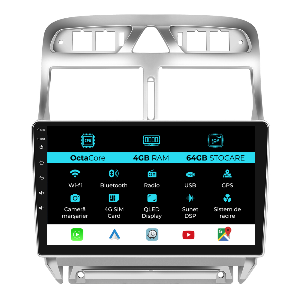 Navigatie Dedicata Peugeot 307 (2000-2013), 9Inch, 4Gb Ram, 64Gb Stocare, Carplay