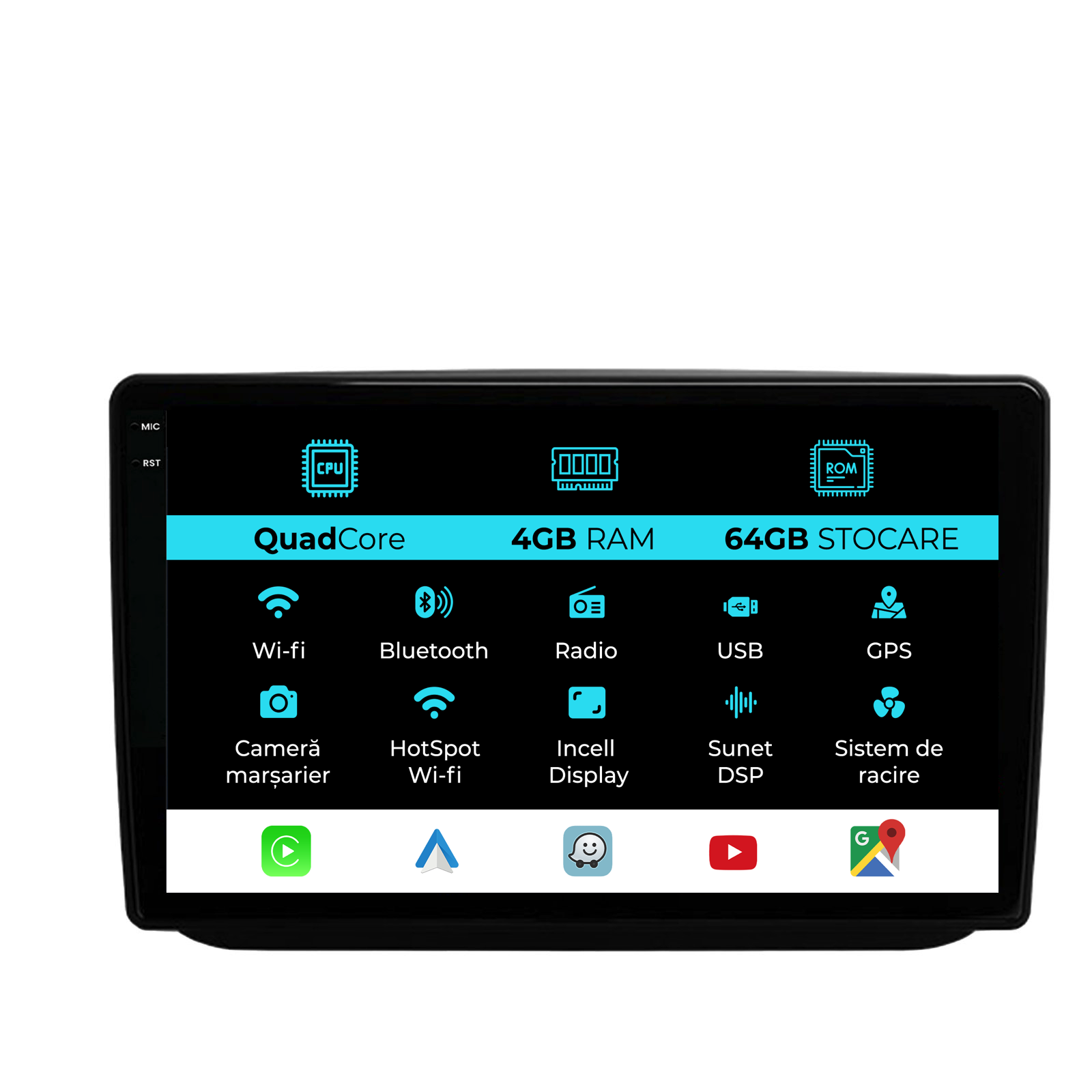 Navigatie Dedicata Skoda Fabia (2007-2014),QuadCore, 10Inch, 4Gb Ram, 64Gb Stocare, Carplay