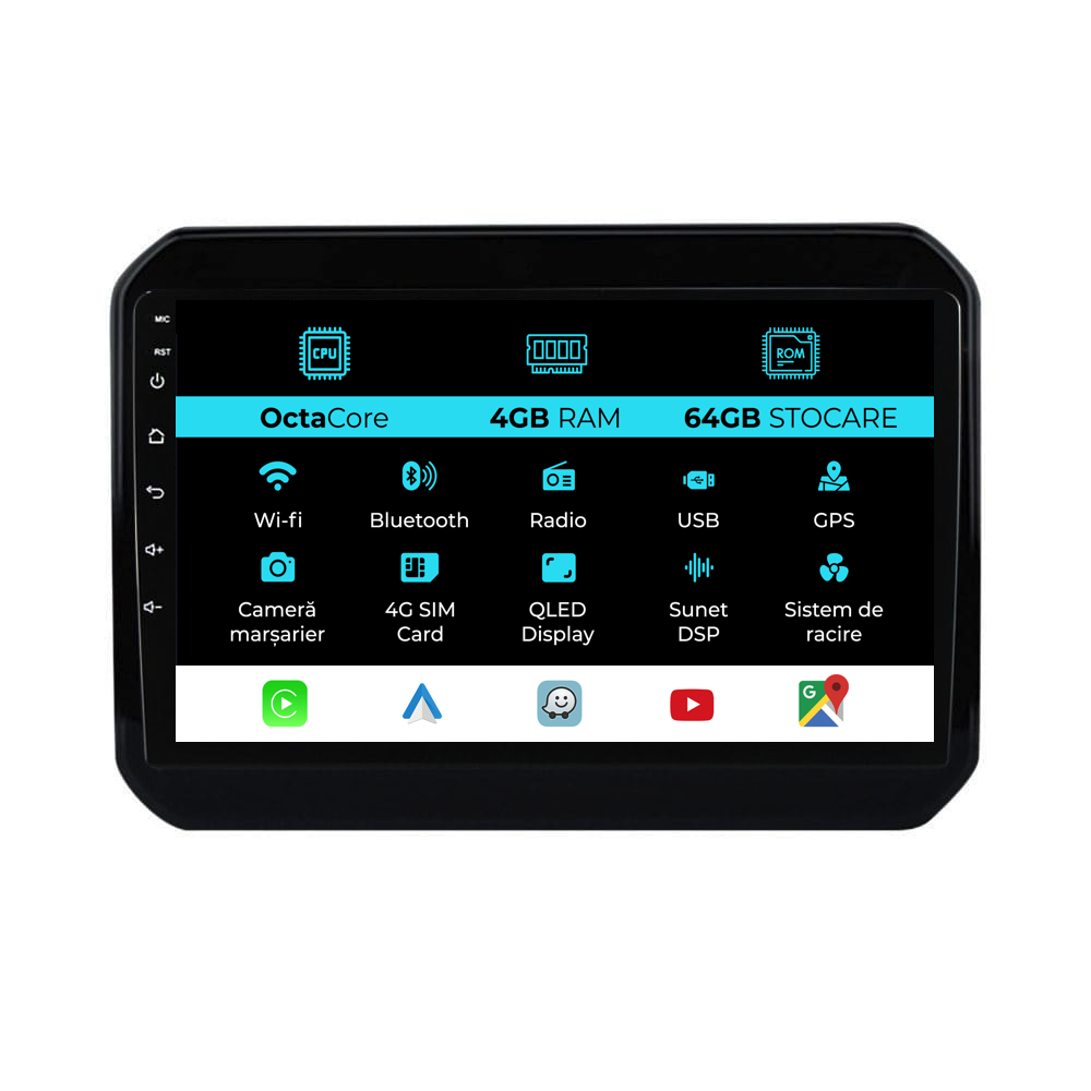 Navigatie Dedicata Suzuki Ignis (2016 – 2025), 9Inch, 4Gb Ram, 64Gb Stocare, Carplay