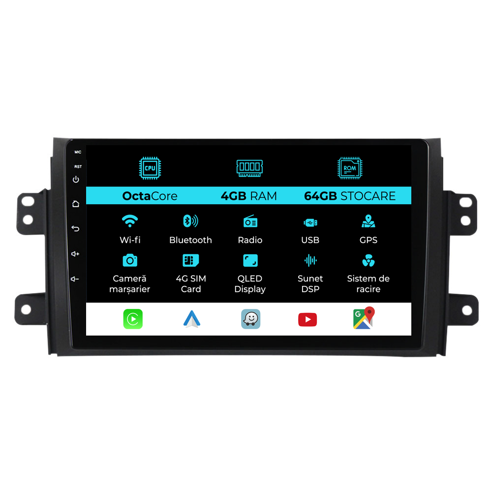 Navigatie Dedicata Suzuki SX4 (2006-2012), 9Inch 4Gb Ram, 64Gb Stocare, Carplay