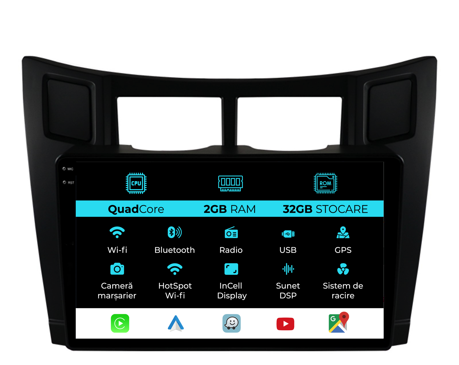 Navigatie Dedicata Toyota Yaris (2005-2011), 9Inch, 2Gb Ram, 32Gb Stocare, Carplay