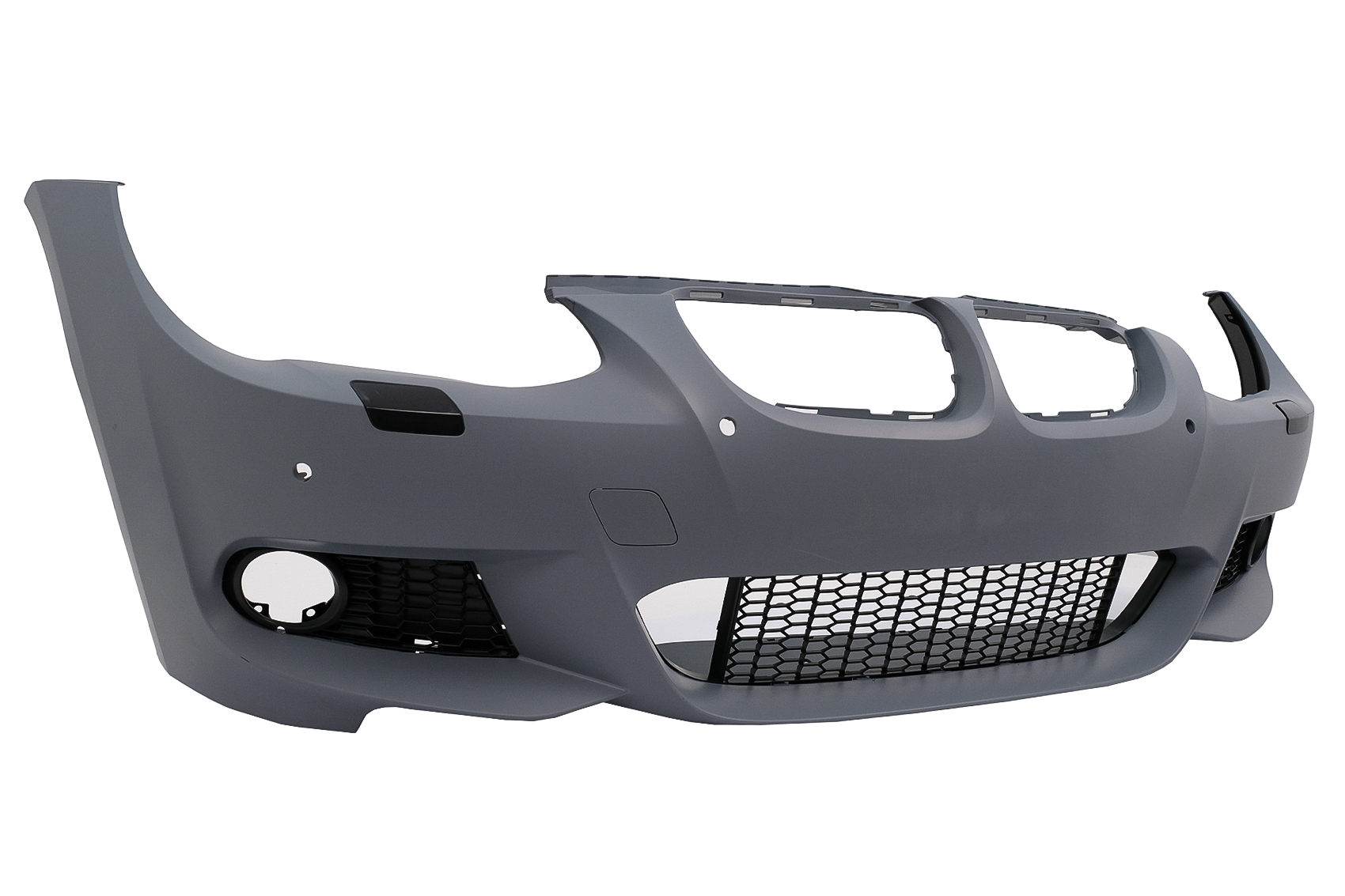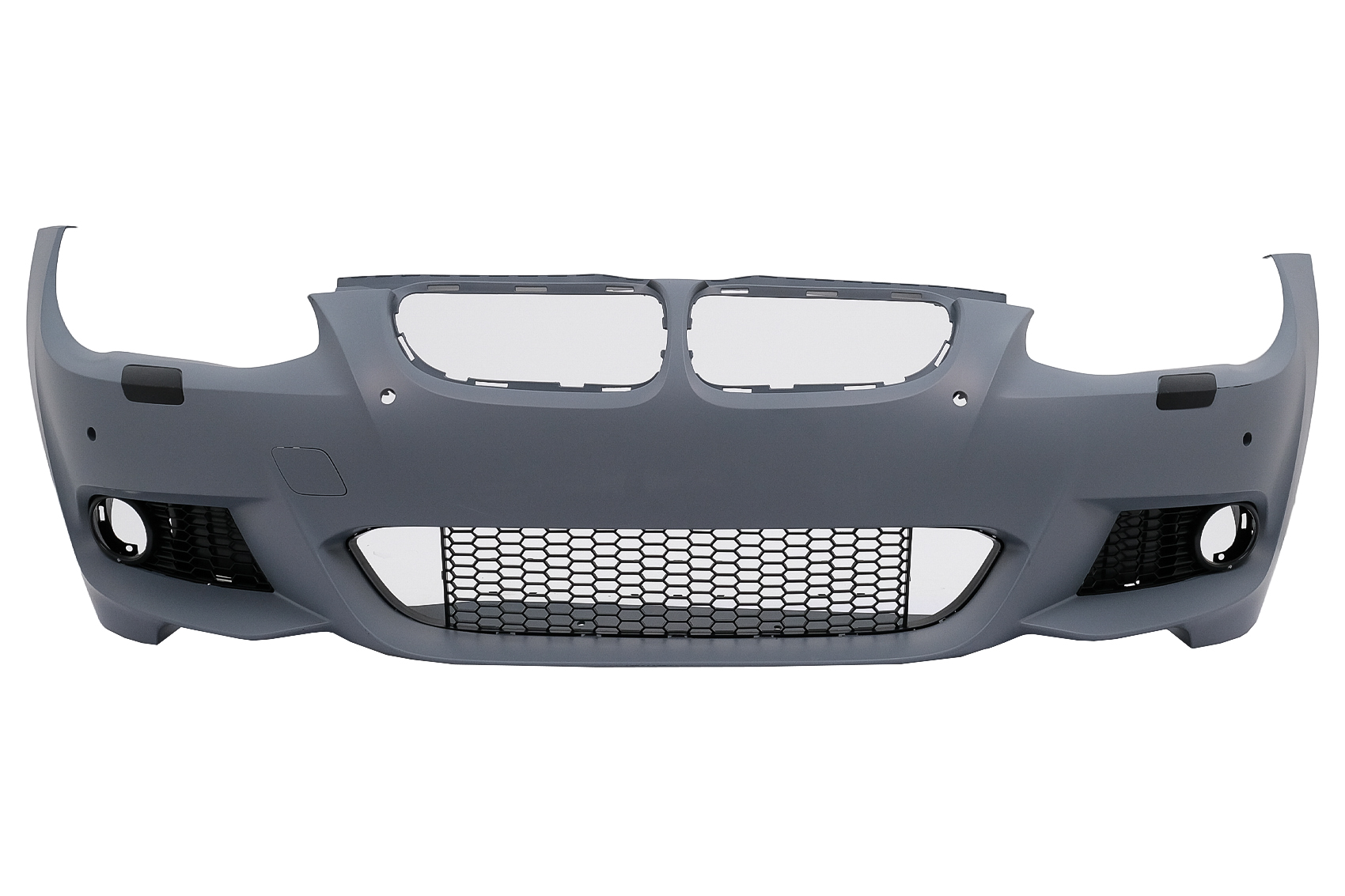 Bara fata echipata cu grila central inferioara, grilele laterale, capacul pentru carligul de remorcare si capacele pentru sistemul de spalare al farurilor.