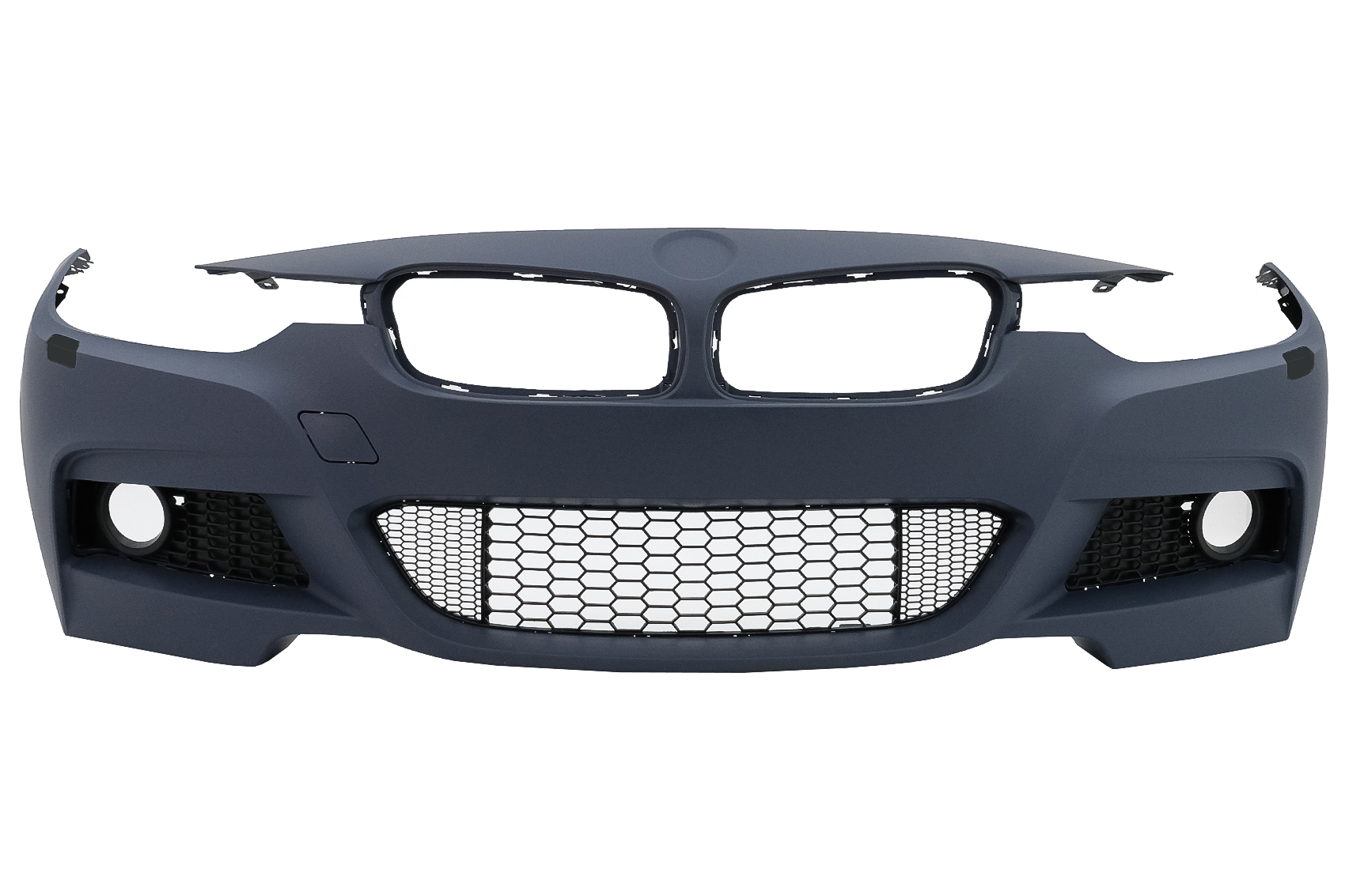 Bara fata este echipata cu grila central-inferioara, grilele de proiectoare, capacul de remorcare si capacelele pentru sistemul de spalare a farurilor (SRA)