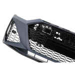 Bara fata echipata cu grilele laterale si grila centrala cu finisaj negru lucios, capacele pentru carligul de remorcare si capacele pentru sistemul de spalare al farurilor
