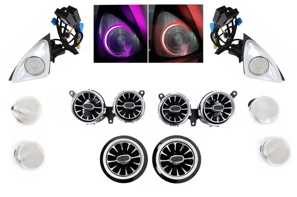 - Descriere: Ornamentele integrează LED-uri personalizabile, oferind o experiență sonoră și vizuală remarcabilă în mașina ta Mercedes.