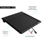 - Sistemul de scurgere a apei permite evacuarea apei de ploaie sau zăpadă acumulată, protejând bagajele.
