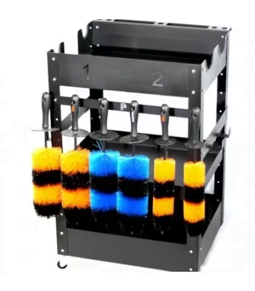 Facut din placa metalica de 1,5 mm, suporta perii sau alte echipamente cu greutatea de pana la 0,5 kg. Bratele inguste ale manerului se potrivesc cu majoritatea gaurilor din manerele periilor.